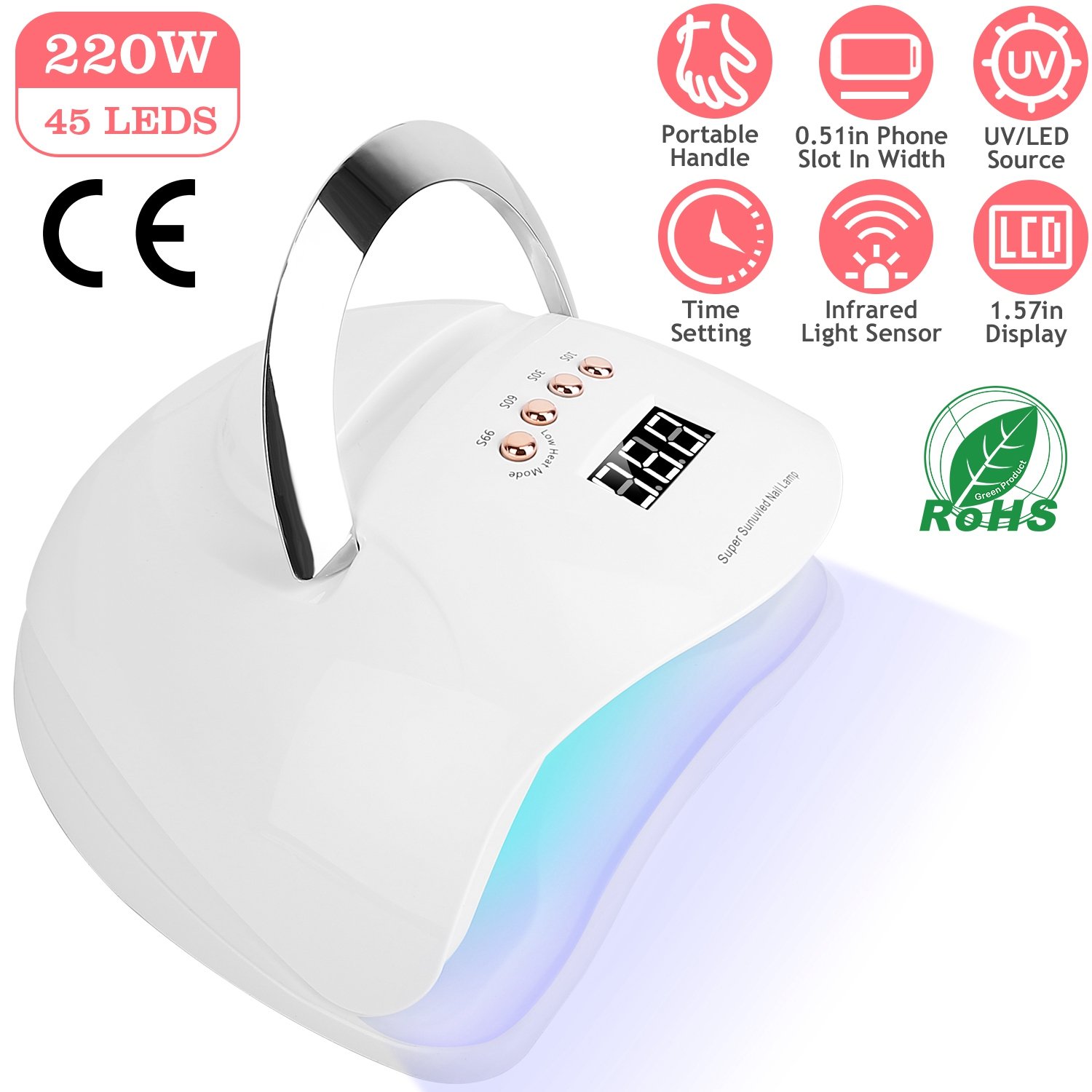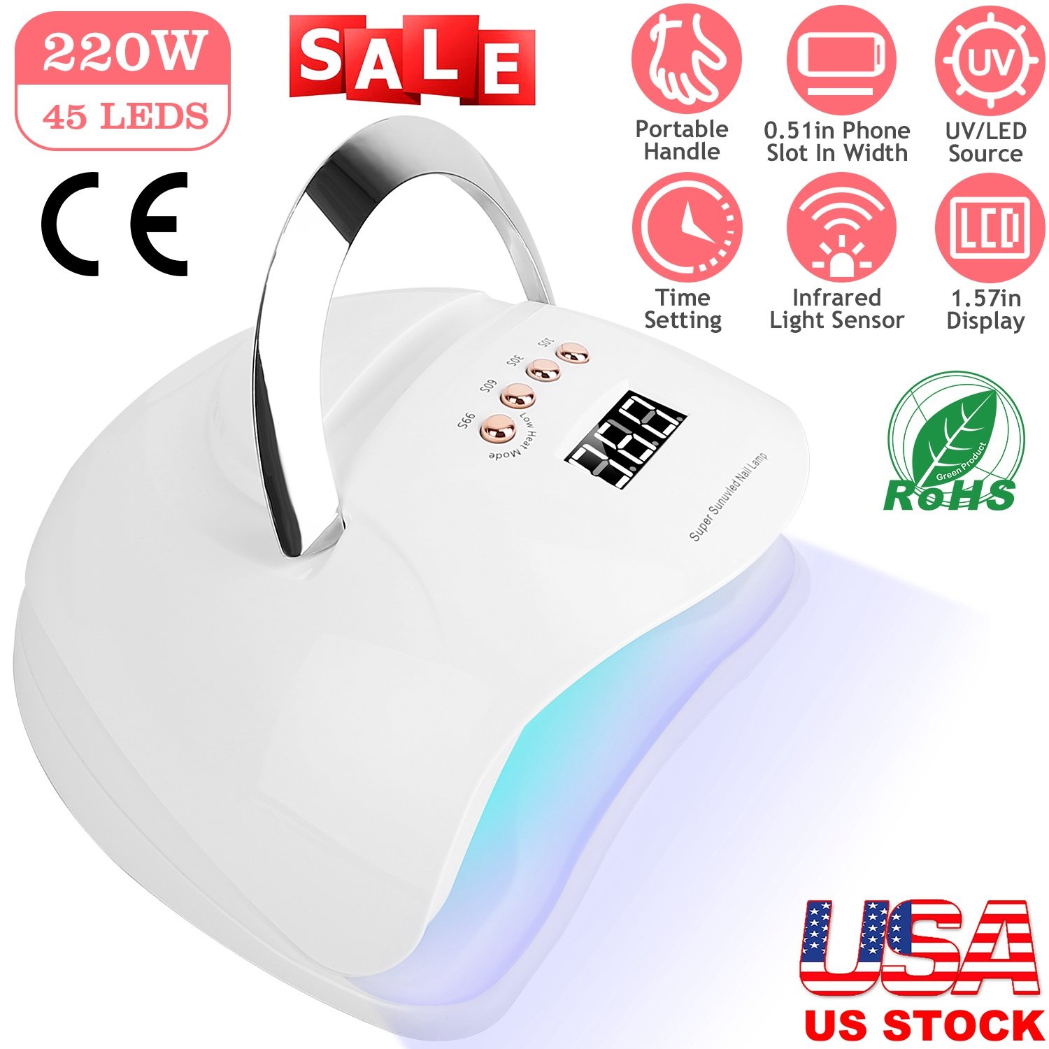 Home > 220W UV LED Nail Lamp Gel Polish Nail Dryer 45LEDs Fingernail Toenail Gel Curing Machine PIR Sensor Timer Display for Home Nail Salon